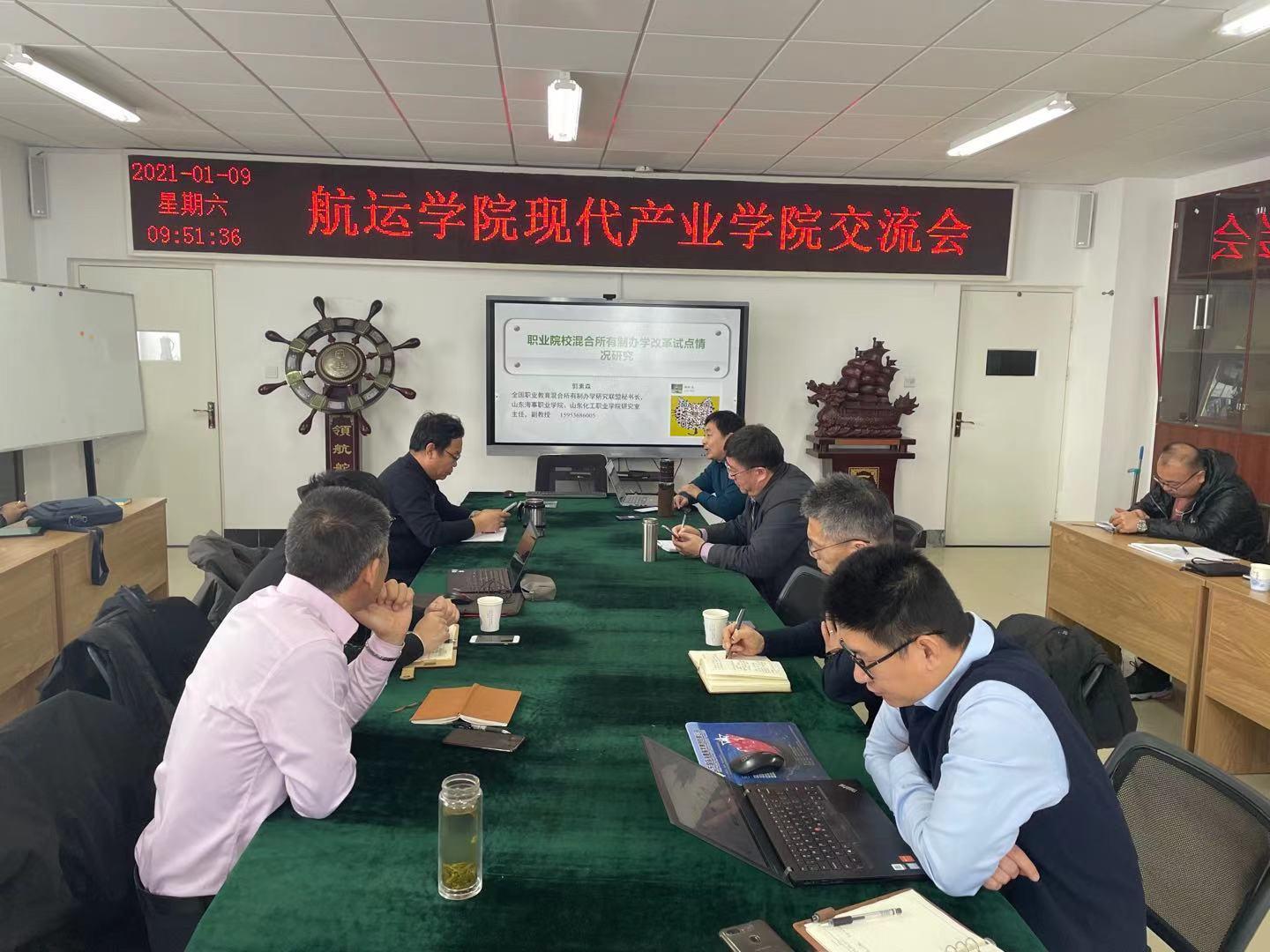 1月9日,山东海事职业色情视频 研究室主任郭素森一行人来色情视频交流公办院校现代产业色情视频 办学,色情视频 党委书记陈海泳,院长王明雨等参加了研讨会。
