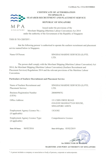 2016年,与哥仑比亚船舶管理集团合资成立“上海哥仑比亚船员管理有限公司”