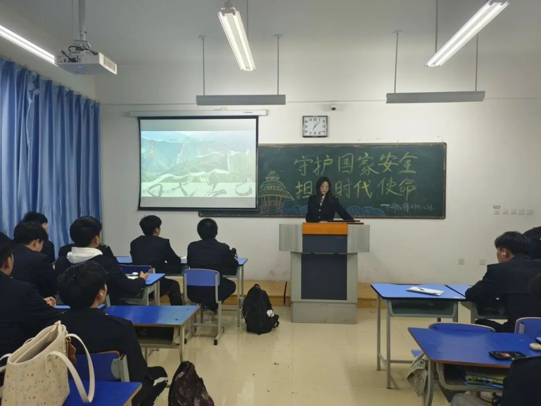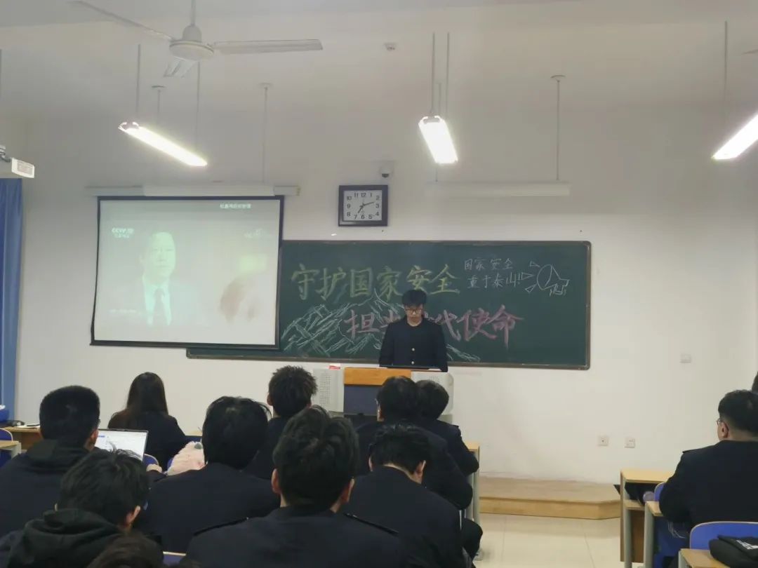 各班团支书带领同学们观看国家安全微电影,引导广大团员青年提升国家安全意识和素养,积极为维护国家主权、安全、发展利益挺担当。此外,各班团支书结合警示案例为同学们解读了国家安全法、反间谍法等法律法规,呼吁大家增强忧患意识,居安思危,自觉遵守国家法律法规,维护国家安全。