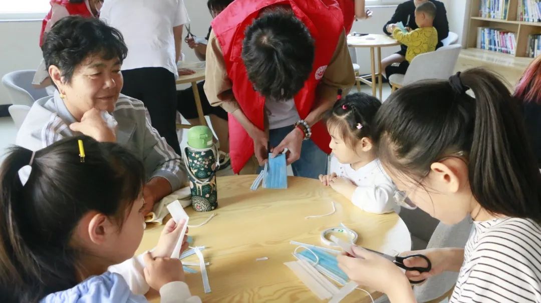 志愿者们带领小朋友们观看了“如何将废弃口罩变身为饰品”学习视频,并向小朋友们分发了经过消毒的旧口罩、胶水、剪刀等材料。在志愿者的指导下,孩子们熟练运用工具,通过裁剪、穿孔、编织、打结等步骤,用巧手将旧口罩变成了精致的蝴蝶结手环。活动中,小朋友们的动手能力和创造力得到了锻炼和提升。