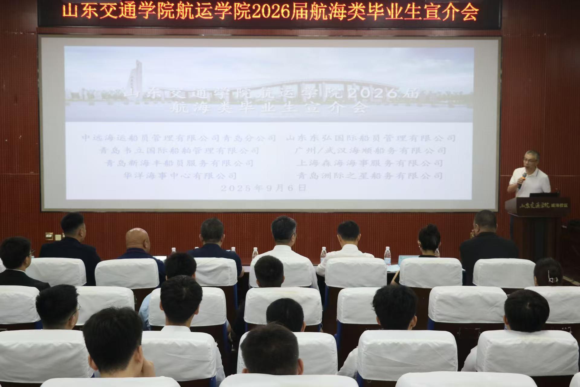 2026届航海类毕业生专场宣介会于威海校区第二楼报告厅顺利举办,中远海运船员管理有限公司青岛分公司、青岛韦立国际船舶管理有限公司等8家用人单位负责人、色情视频
