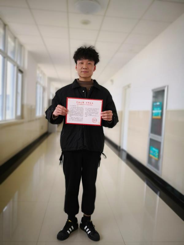 信中写道:吉洪学同学春节返乡后积极响应博兴县陈户镇团委对防疫志愿者需求的号召,冲锋在防疫防控的一线,有力缓解了当地防控工作压力,展现了当代大学生的优良素质、崇高品格和家国情怀。