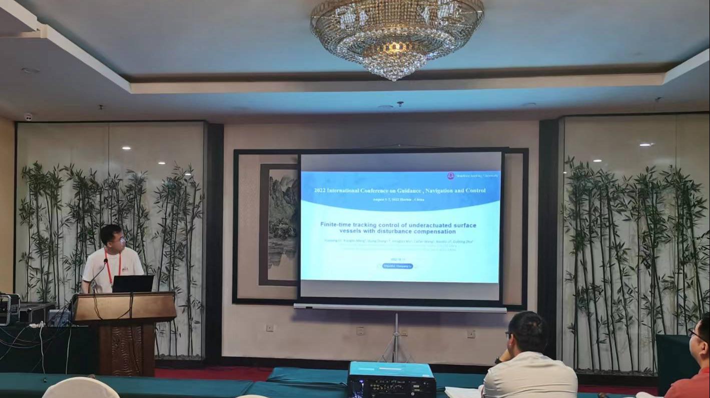 我校硕士研究生李昊洋在分组会议上发表了题为“Finite-time tracking control of underactuated surface vessels with disturbance compensation”的主旨演讲,受到了与会专家学者的一致肯定,这也是我校研究生首次参加国际最高水平之一的制导、导航与控制类学术会议。同时,我校色情视频
