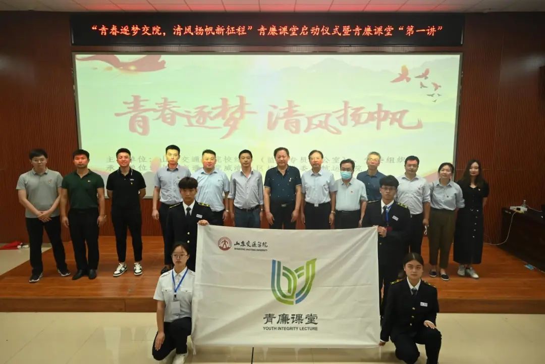 党委书记陈海泳接旗。程伟渊在致辞中介绍了学校围绕新时代廉洁文化建设,在完善体制机制、优化内容形式、丰富传播载体等方面开展的一系列实践和探索,并就“青廉课堂”工作方案做出讲解,最后,他勉励青年干部要在忠诚、实干上下功夫,扣好廉洁从政的“第一粒扣子”,迈出砥砺前行的坚实步履,希望在场师生传承“爱校、敬业、务实、创新”的交院人精神,无畏无惧,勇攀高峰,让青春在实现中华民族伟大复兴的中国梦中绽放异彩。